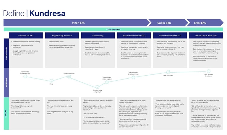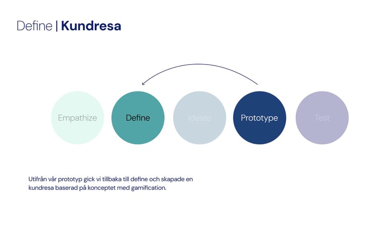 After developing our first prototypes, we realized that we needed a clearer picture of when and how networking challenges would create value for participants. To do this, we returned to the Define phase and mapped out a user journey focused on the gamification concept.