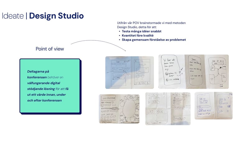 Our methods included market analysis, stakeholder interviews, and surveys for insights. We used POV statements, “How Might We” questions, personas, and impact mapping to define problems and guide ideation. Design Studio sessions, brainstorming, and paper prototypes led to wireframes and digital prototypes, which we tested and refined.
