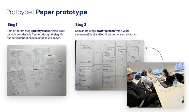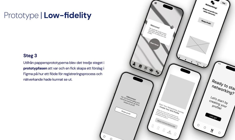 We began with paper sketches, where each team member visualized how networking could work in the app. This allowed us to quickly test and communicate different approaches without investing time in high-fidelity design.